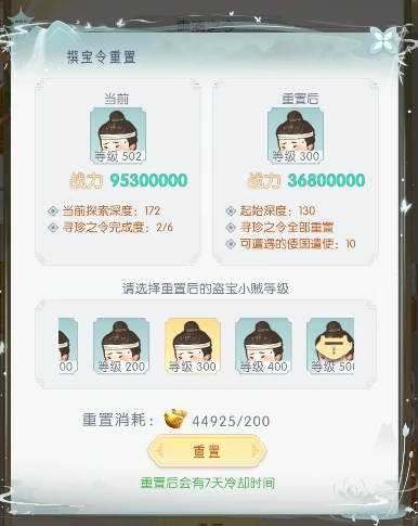 2. 要高级精炼材料(如天王雕像),将撰宝令重置到更高等级。