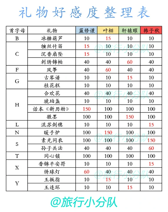 方式二:赠送礼物。这是最直接的提升途径,具体礼物与对应效果参考下表: