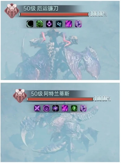 50级首领2只,驻扎谐振区,叫厄运镰刀和阿特兰蒂斯。