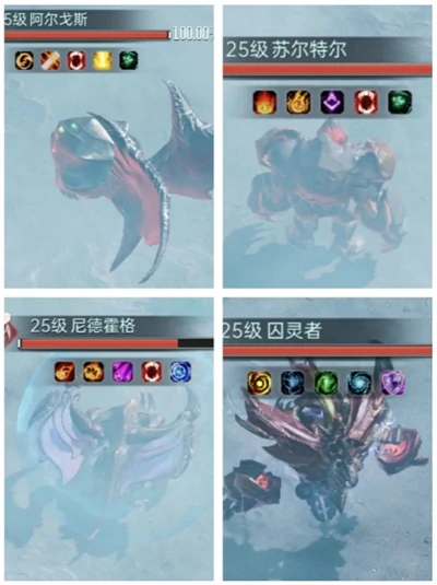 25级首领4只,在出生州,有阿尔戈斯、苏尔特尔、尼德霍德和囚灵者。