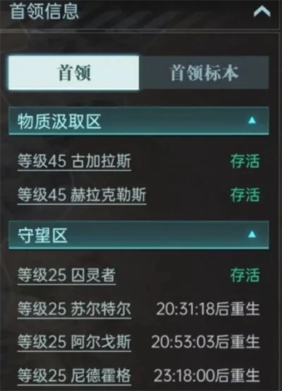 想快速查看首领存活状态,注意界面右侧信息栏,它会列出首领实时状态,如能否挑战、是否已被击败,提升搜寻效率。