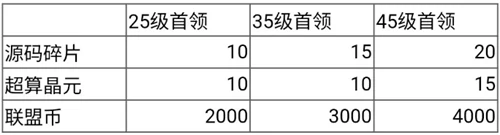 击败首领后采集标本,每日4次机会,可获源码碎片与加速道具。不同等级首领标本奖励不同,具体资源如下表所示: