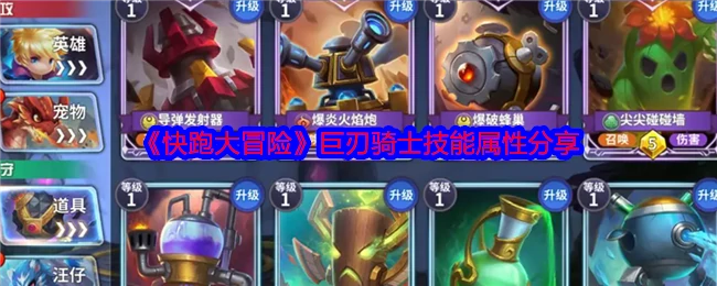 快跑大冒险游戏里,巨刃骑士是近战输出兼生存能力的角色。基础属性均衡,生存特质突出。花8888金币可入手。下面详细解析技能与属性,助你全面了解该角色。