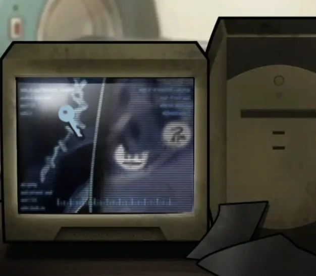 此时有两把未知功能钥匙。用新钥匙开电脑桌抽屉,得病历本及“2F - 1F”字样钥匙,此钥匙开向下楼梯铁门。通过铁门到新场景,下楼正对娱乐室(暂锁),用钥匙开右侧保安室探索。