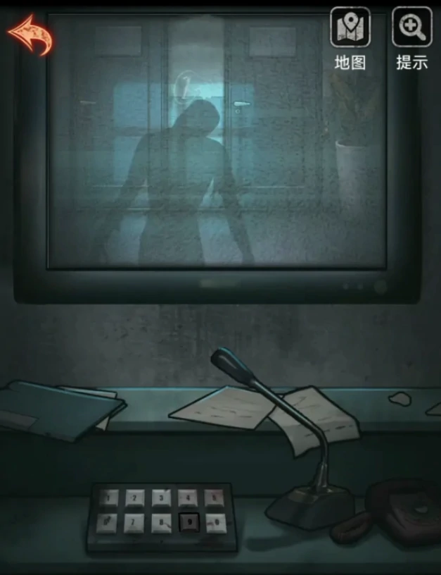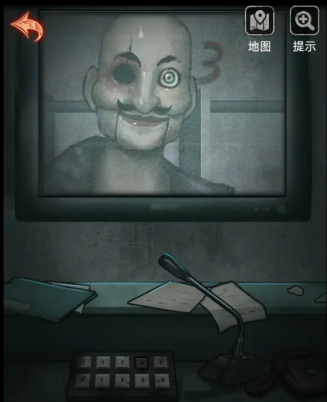 将光线导向床底钥匙,出现黑色鬼手抢夺,快速点击拿钥匙。用钥匙开镜架下方锁,按红色按钮,激活监控系统。根据密码盒数字对应监控画面数字(圆圈内2、楼梯旁7、木偶后脑3、人影后1),得出真实密码2731。