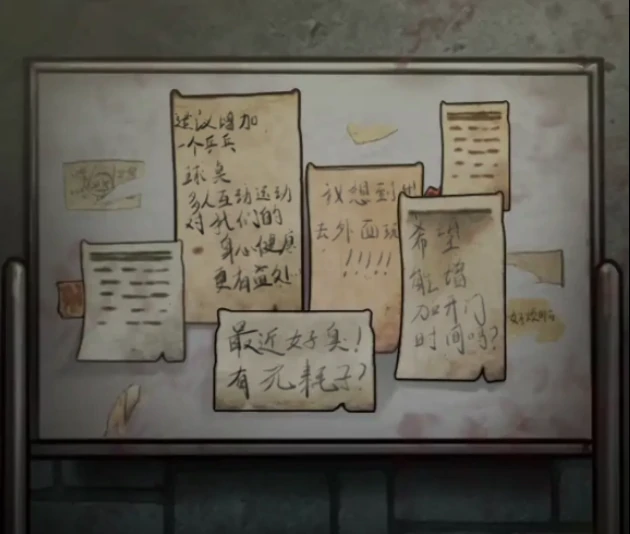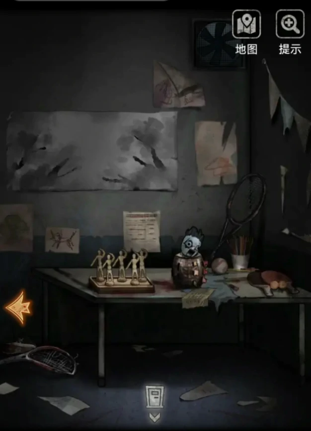 在公告栏纸条左上角取褐色小剑,用痒痒挠取风扇罩,塞钢丝球停风扇,取红色小剑。将三把小剑插入玩具机关,遵循“只刺穿白色骨骼部位”原则(点击左上、正中、右上位置)。完成后,用指甲剪剪开右下掌印处白纸,获纪念币。