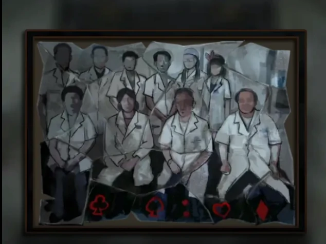 输入密码,开启拼图游戏。注意控制时间,超时触发女鬼惊吓。完成拼图,获印时间符号(空心梅花、空心黑桃、空心红心、实心方片)照片,照片背面藏钥匙。同时在床头柜拿磨过的指甲剪。