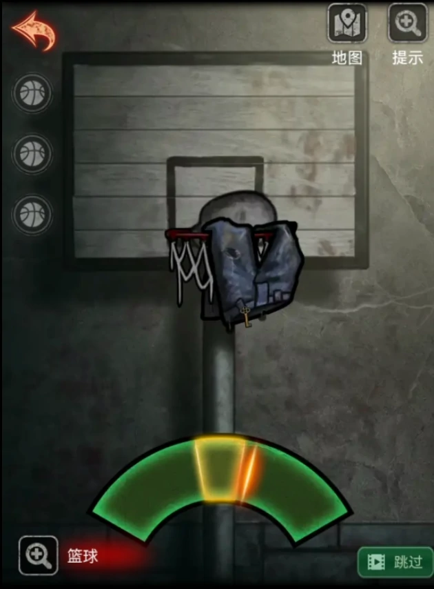 组合假手与杆子成钩杆,在花丛取蓝色小剑。到浴室深处,用水池钩杆取篮球。回娱乐室,完成三次快速命中篮球小游戏(失误重来),获胜获钥匙。