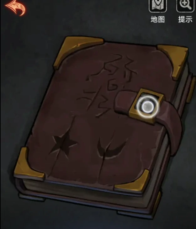 开始解谜:桌子下方红色日记本,将小零件装至密码锁。日记本提示密码“左边五角星,右边月亮”,调整密码锁使最上方显示对应图案打开日记。