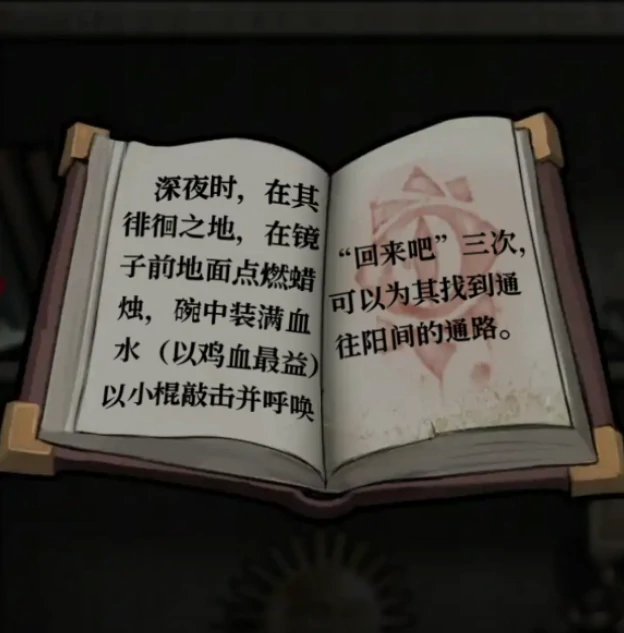用打火机点蜡烛,用玻璃罩防风(剧情提示窗户破洞有风)。镜前画叉处放碗,倒入红墨水,用圆珠笔敲碗三次(可能触发轻微惊吓),镜面显示数字57,为另一患者编号。