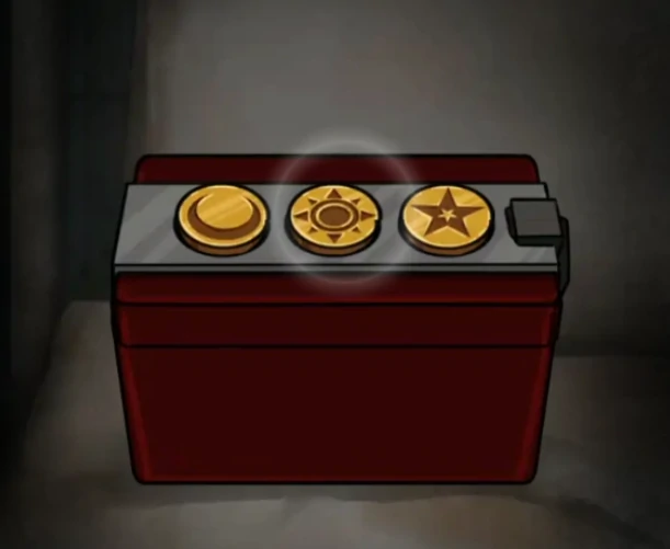 回2011病房,将三个金色按钮按图案顺序(月亮、太阳、星星)装入床上红盒,打开获图案玩偶及其玻璃罩。