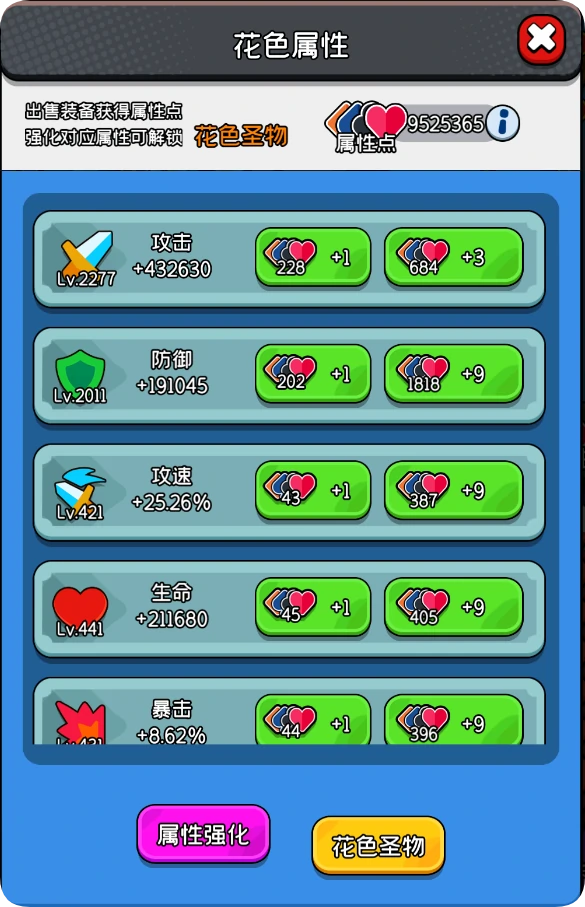 此属性与刮刮卡玩法关联紧密,玩家积累中奖花色,能提升属性等级。不仅为角色增加攻击、生命、暴击等属性,花色达一定数量,还能激活各类圣物技能。