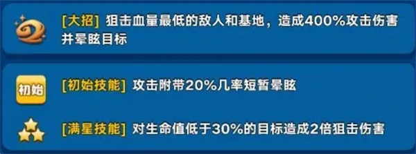 火枪:用特殊技能对敌方基地直接伤害,概率触发眩晕