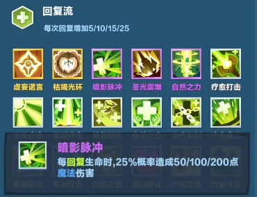 优先选增强被动效果天赋。5级天赋,生存压力大就选右侧及时回血,压力小选左侧伤害转化回血,配合暗影脉冲提回复和触发被动频率。