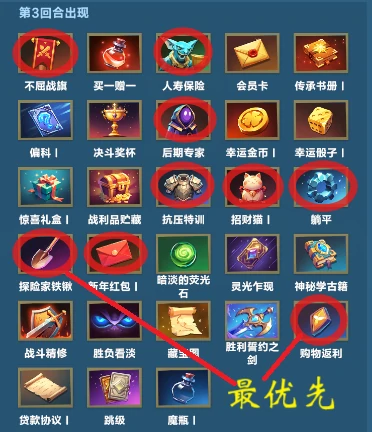 连败第11回合生命值28 - 34。第13回合选保命或回复类神器,如蛛网斗篷、不死鸟余烬,提高进前四概率。