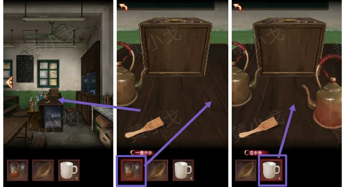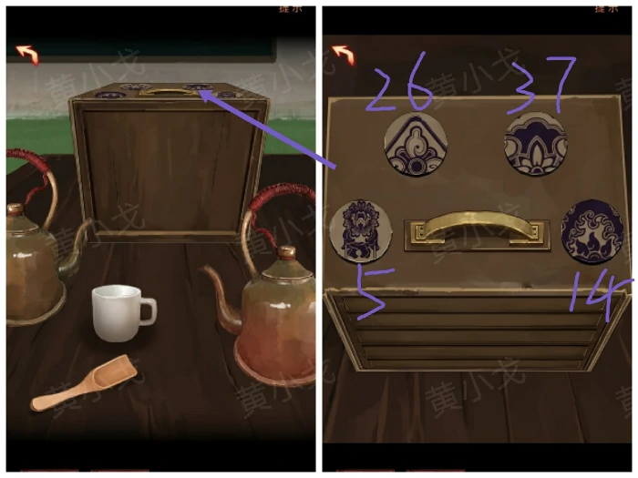 9. 按茶杯把手箭头提示,逆时针点茶箱图案按钮:4234123