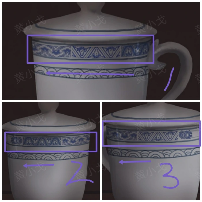 6. 观察玻璃柜中茶杯花纹样式