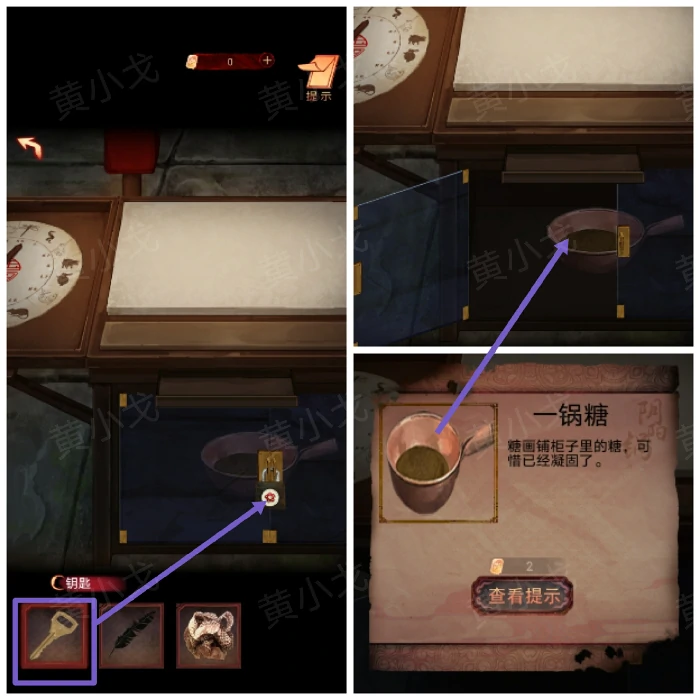 18. 用钥匙打开玻璃柜,拿一锅糖