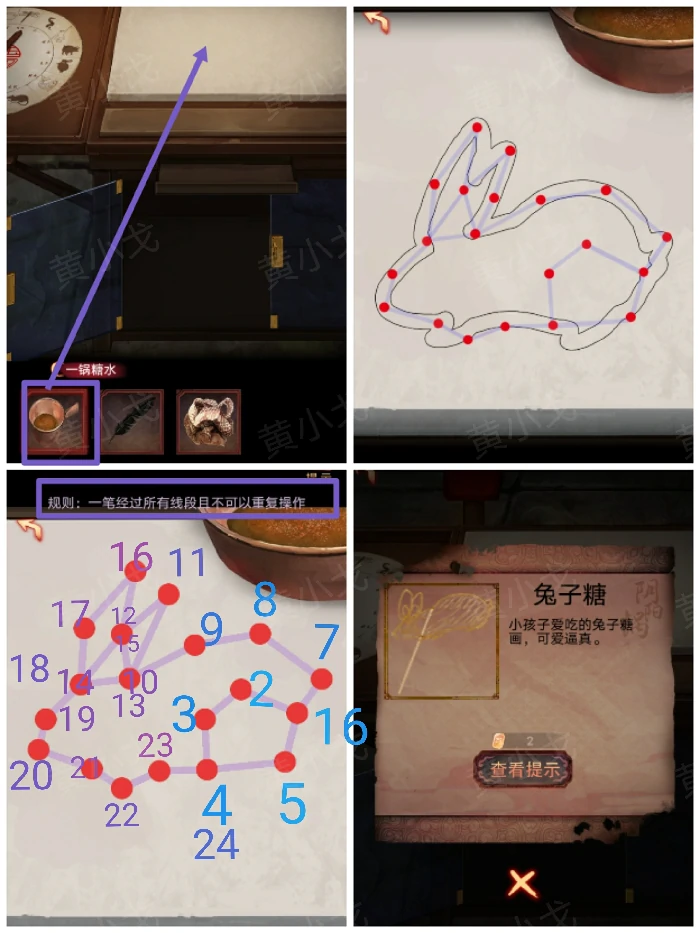 20. 把糖水倒入画板,完成一笔画游戏,得兔子糖画