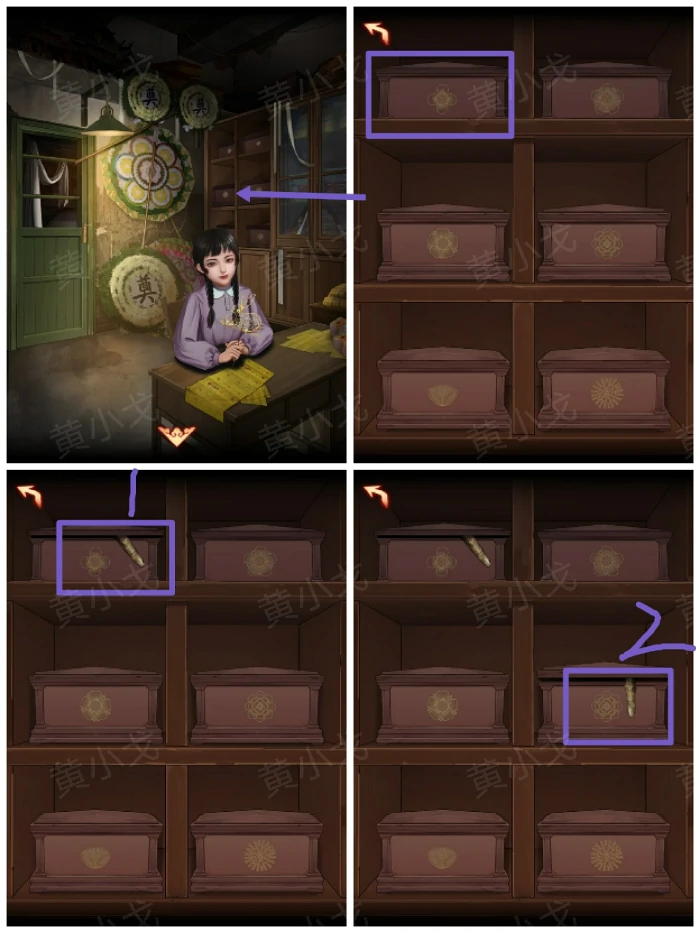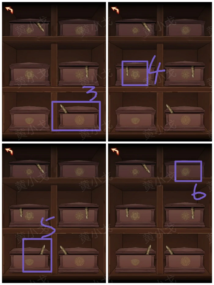22. 根据柜顶骨灰盒枯指指向,按顺序点其他骨灰盒,记录图案排列