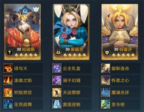 获取英雄:通过限定卡包“狂热之火”获得哈迪斯与爱丽丝,从卡包“迅捷之风”获取特蕾莎。