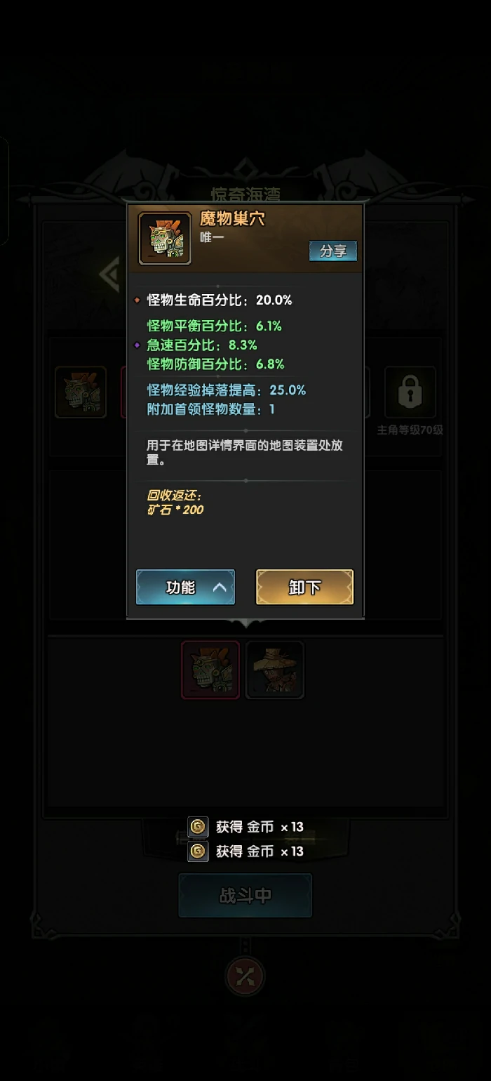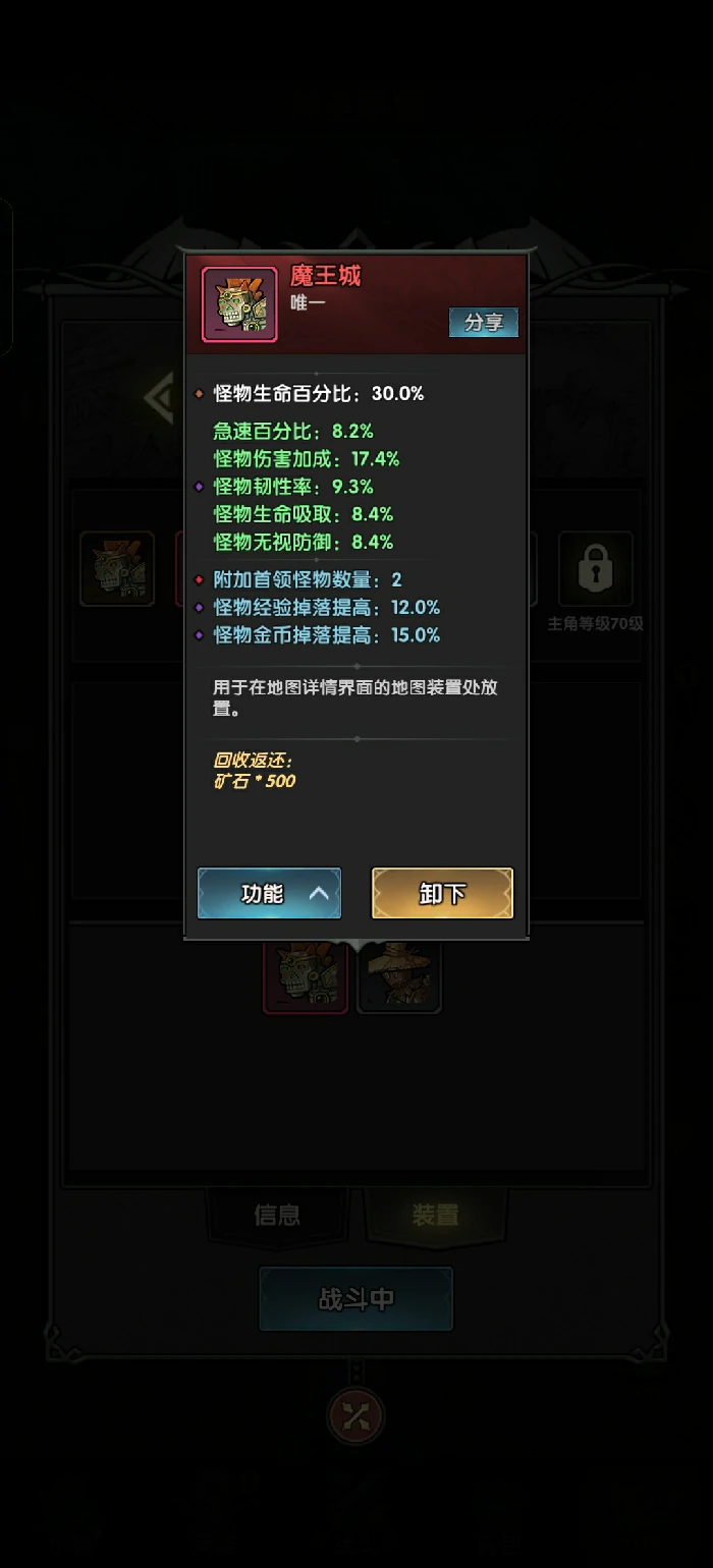 推荐装置搭配:一般场景用普通装置加10%经验词条;魔王巢穴和魔王城选传奇品质;狩猎类选史诗。精英怪和首领怪经验高,建议只加1个精英词条,避免刷新间隔延长。