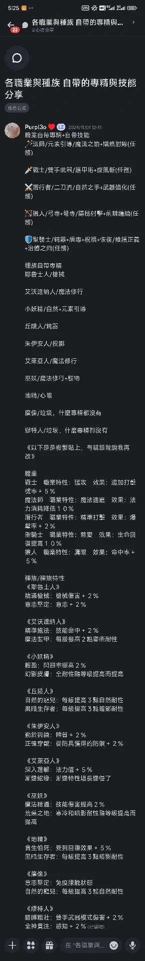 种族特性一览