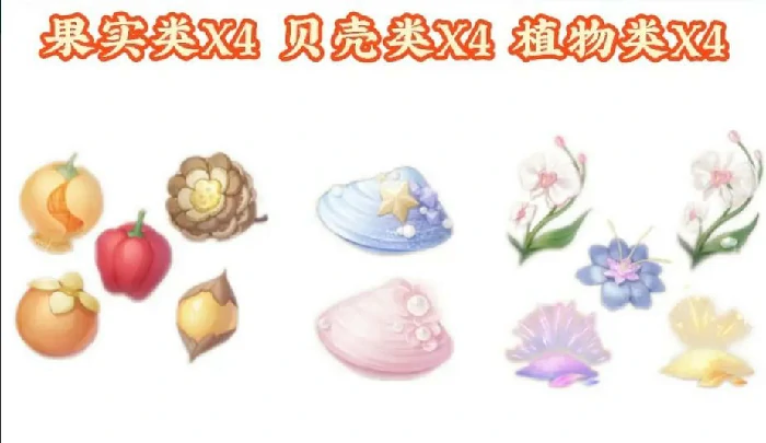 黑色宴席白牛配方:果实类×4、贝壳类×4、植物类×4