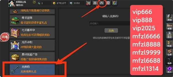 游戏初期用这些兑换码:vip666、vip888、vip2025、mfzl6666、mfzl8888、mfzl9999、mfzl6688、mfzl1314。