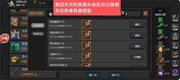 做任务拿钥匙参与转盘活动,有机会得稀有资源。