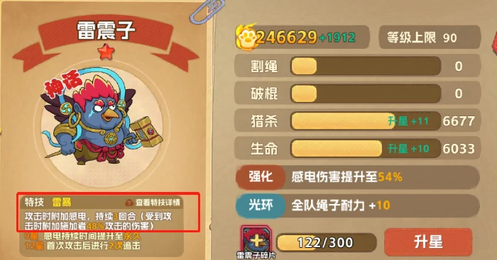 雷震子第二技能雷暴可施加感电状态,持续3回合。感电目标每次受攻击,额外承受施术者48%攻击力伤害,提升团队持续输出。应对高生命值敌人或首领战,配合多段攻击角色,快速叠伤害,持久战占优势。