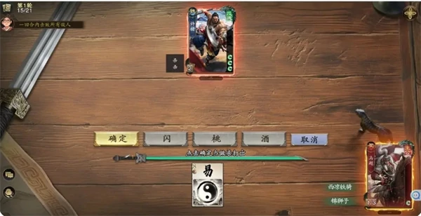 18连续用两酒,易牌当杀打出(先选中目标),获胜。