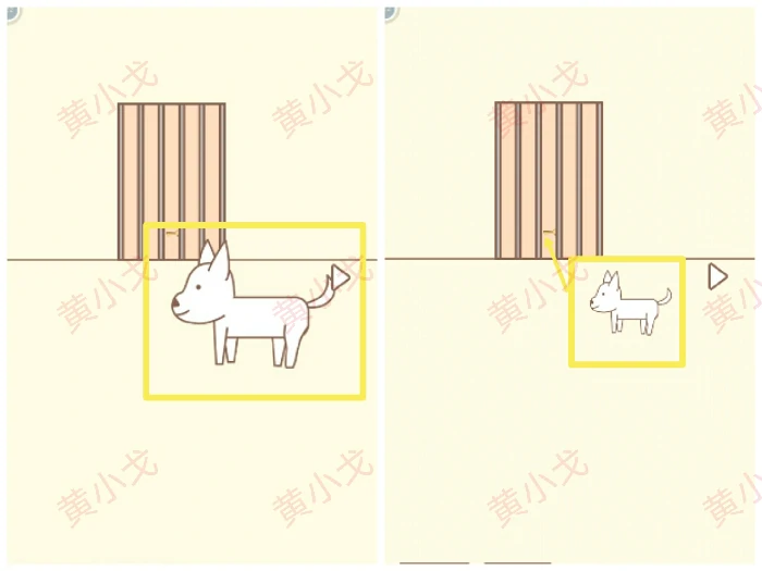 1. 先缩小左侧场景小狗,拖小狗到门外,拿钥匙