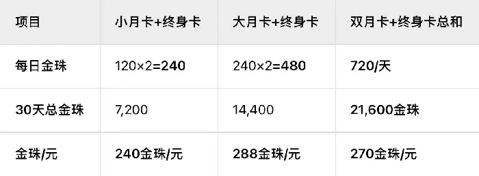 双月卡收益翻倍,每元投入得270金币,效率大幅提升!