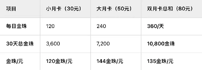 双月卡平均每元获135金币,参考:商城直接充值,1元仅兑10金币,差距大!