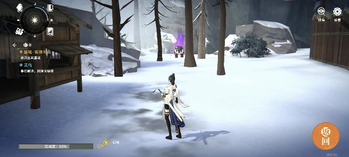 对决剑之川中的雾锁寒山是31至35级玩家可进的蜃境关卡,玩法是在迷雾山地探索解谜,以下是详细流程: