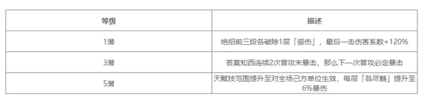 与君共饮:每次造成暴击伤害后,300范围内友方单位获一层“各尽觞”增益,每层加4%暴击伤害,持续10秒,最多叠8层。