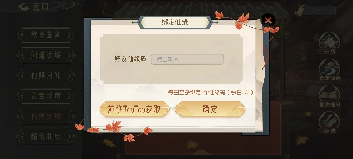 2. 仙缘码互助:每日可填写5个他人仙缘码,接收10个他人助力,每日最多得11个灵刃符;