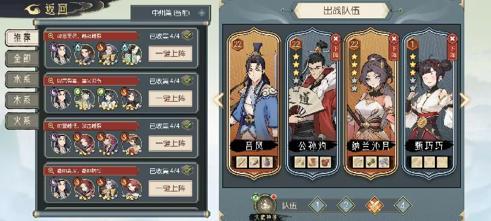 保甲破坏血量见底时,用主线常见防御反击阵容:吕风、纳兰沁月、公孙灼、甄巧巧。