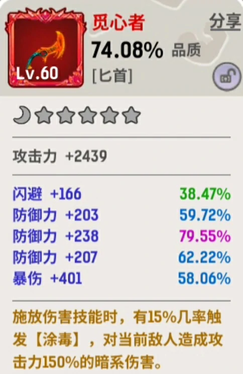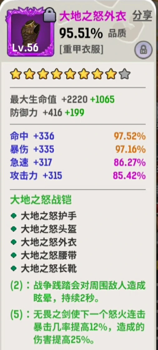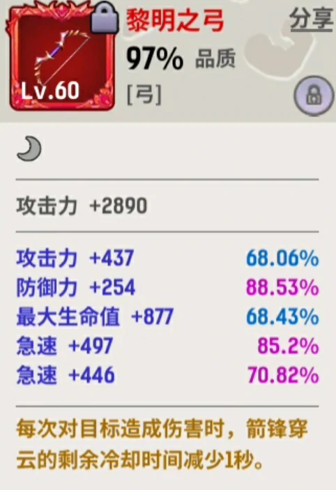 40级前,穿强力装备,优先攻击、极速、暴击、暴击伤害属性。40级后凑套装,先凑两件套,再逐步搞五件套。60级必须带五件套,不然输出效率差很多。