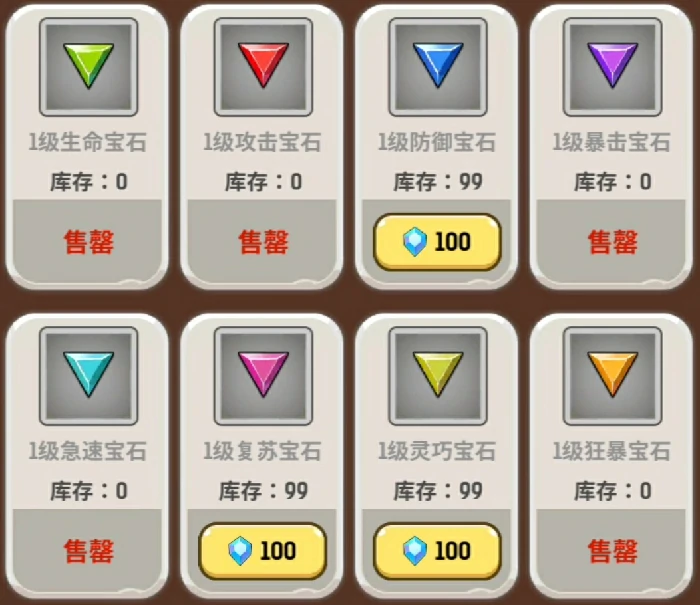 宝石优先镶嵌攻击、极速、暴击、狂暴等输出类宝石。合成到3级后平均分给三名角色,别一味合高级宝石导致分配不均。