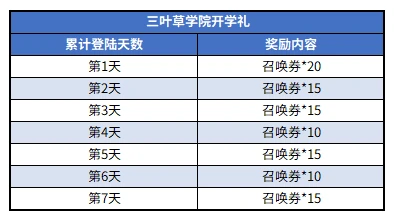 三叶草学院开学礼活动,每日登录领召唤券,首日20抽,累计七日共100抽!