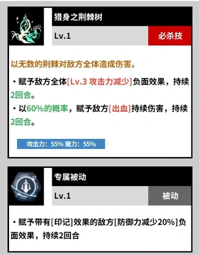 攻击带[印记]敌人,降低其20%防御力,持续2回合。