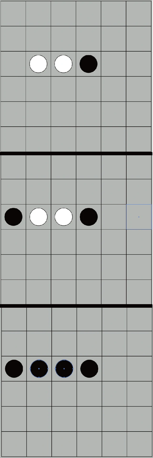 右上方白子无法夹取,仅翻转右下区域白子