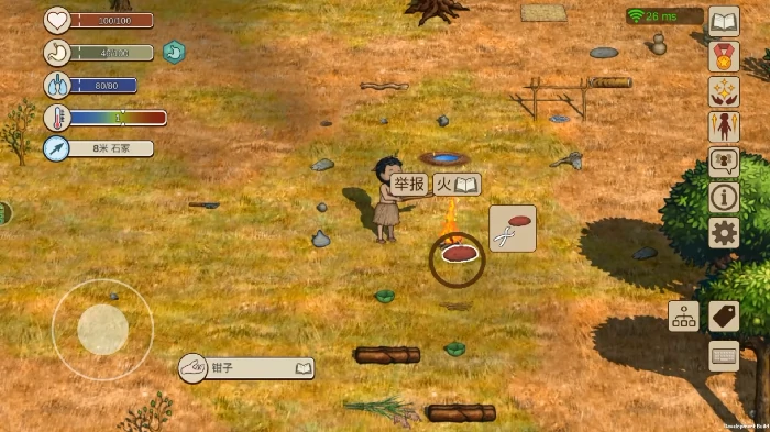 1. 地面使用燧石刀,从动物身上获取肋排、生肉。