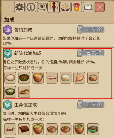 无需担忧,借助个人加成系统,食用特定食物后激活新陈代谢增益效果,延长饱腹状态持续时间25%。该效果对经常忘记吃饭的玩家十分实用。