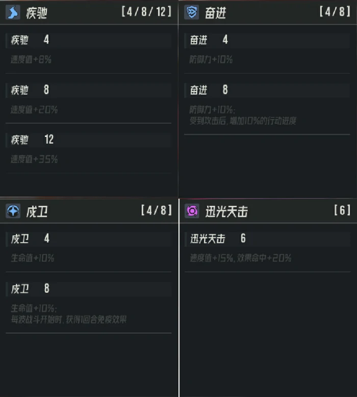 源器:12疾驰+8奋进/戍卫+6迅光天击(毕业配置,前期逐步凑)