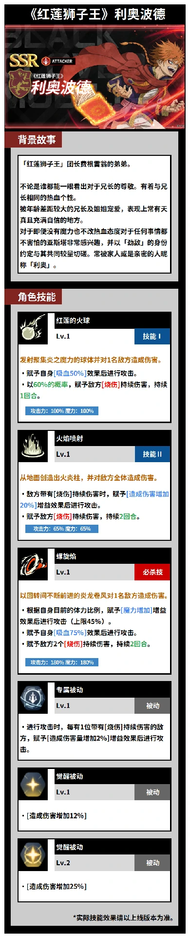 黑色四叶草魔法帝之道红莲狮子王利奥波德角色解析