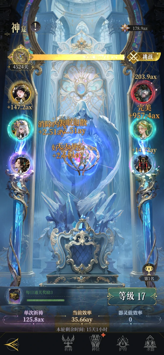 核心成员:天鹅女武神(神器≥10级)+ 财神(神器1级)