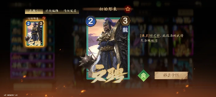 3. 选文聘当核心。没抽到,靠加攻单位与卷土重来配合高顺单路压制。用周泰,给全场加攻,攻击力常达7点以上,配合其他增益占一路。